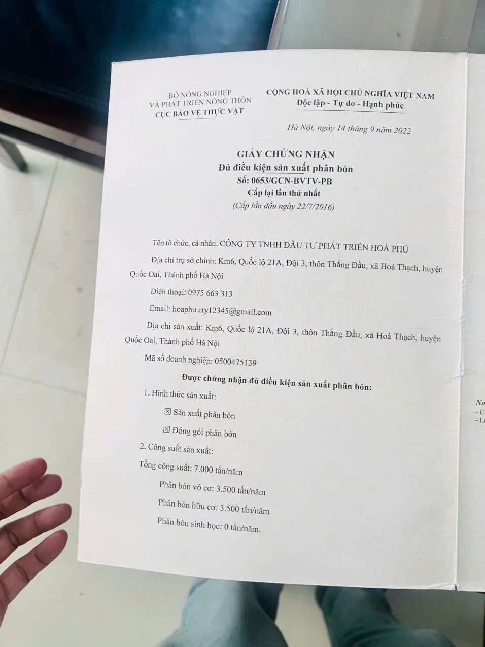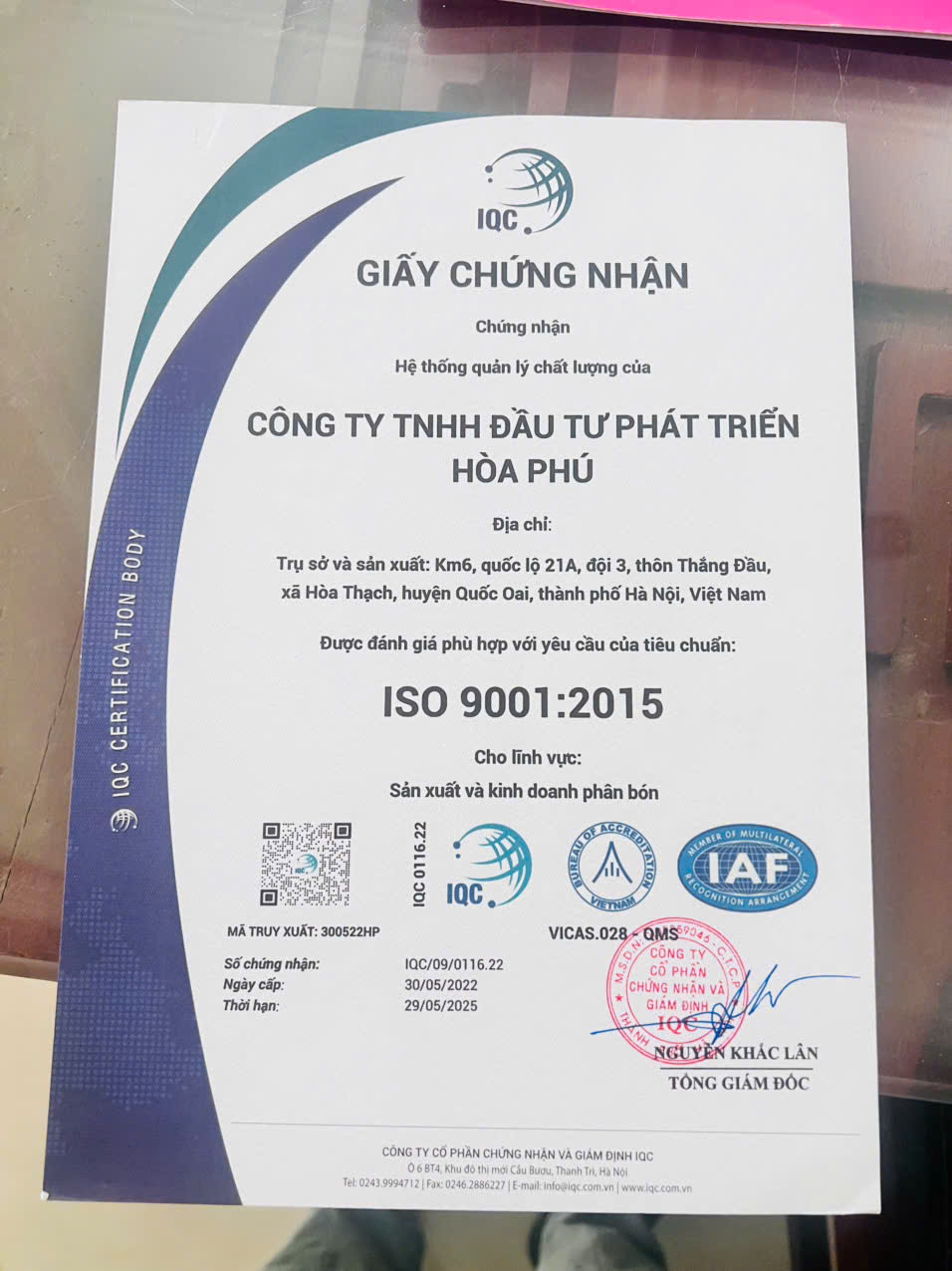 CÔNG TY TNHH ĐẦU TƯ PHÁT TRIỂN HÒA PHÚ là một trong những đơn vị tiên phong trong lĩnh vực sản xuất và cung cấp các loại phân bón cao cấp, hỗ trợ tối ưu cho sự phát triển bền vững của nền nông nghiệp Việt Nam. Với sứ mệnh mang đến những giải pháp dinh dưỡng cây trồng hiệu quả, an toàn và thân thiện với môi trường, HÒA PHÚ không ngừng nghiên cứu và phát triển các sản phẩm chất lượng cao, đáp ứng nhu cầu đa dạng của bà con nông dân.