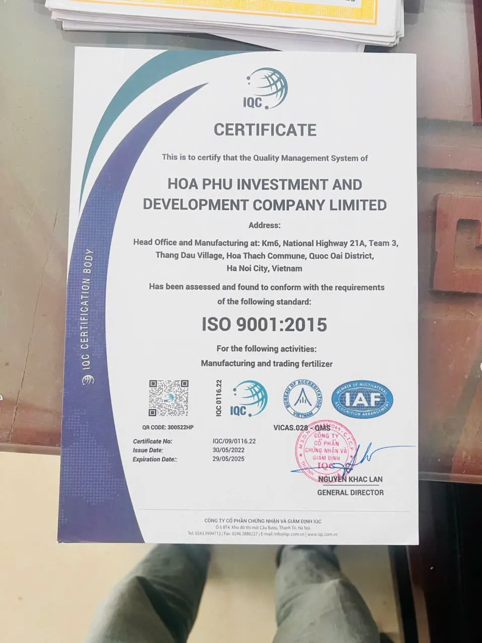 Với hệ thống sản xuất hiện đại, CÔNG TY TNHH ĐẦU TƯ PHÁT TRIỂN HÒA PHÚ luôn tuân thủ các tiêu chuẩn chất lượng nghiêm ngặt trong từng sản phẩm. Chúng tôi áp dụng công nghệ sinh học tiên tiến trong sản xuất phân bón, đảm bảo tối đa hàm lượng dinh dưỡng, giúp cây trồng hấp thu hiệu quả và phát triển bền vững.