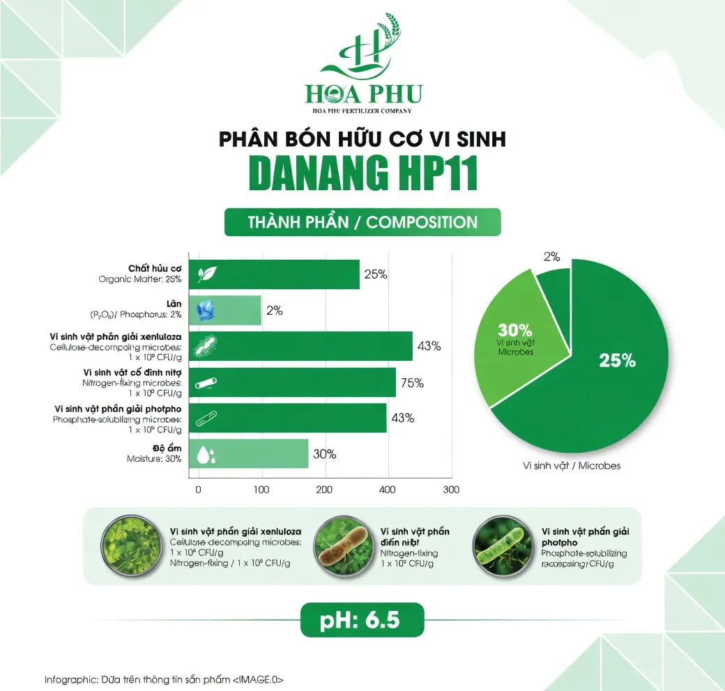 Danang HP11 sở hữu công thức đặc biệt kết hợp chất hữu cơ với hệ vi sinh vật sống: